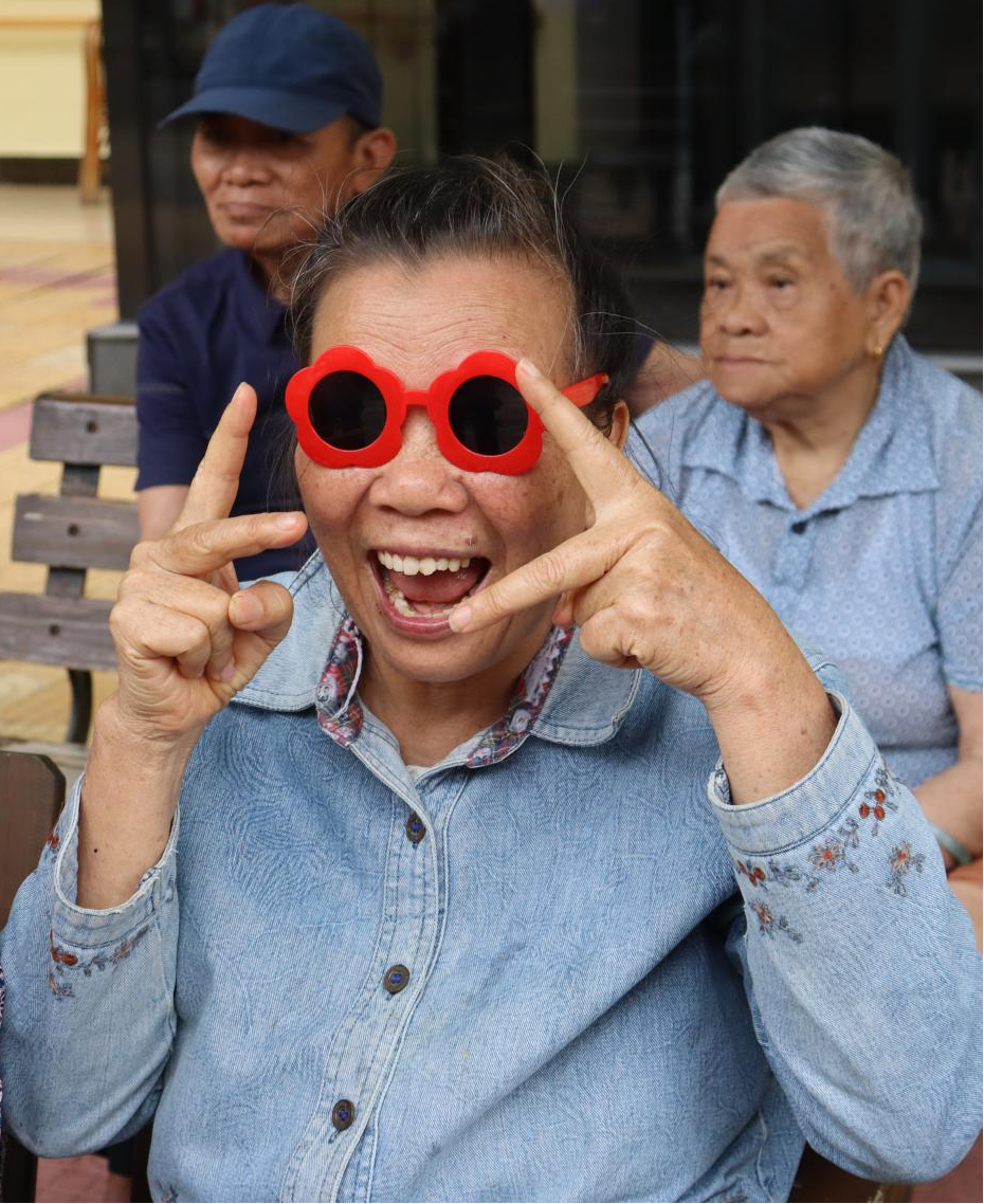 拍摄笑脸照环节,志愿者们贴心送上拍摄眼镜,让老人体验年轻人的拍照方式,用镜头定格下老人灿烂的笑容,后续将照片打印出来,送到老人手中,这些照片承载着大家之间深厚的情谊。