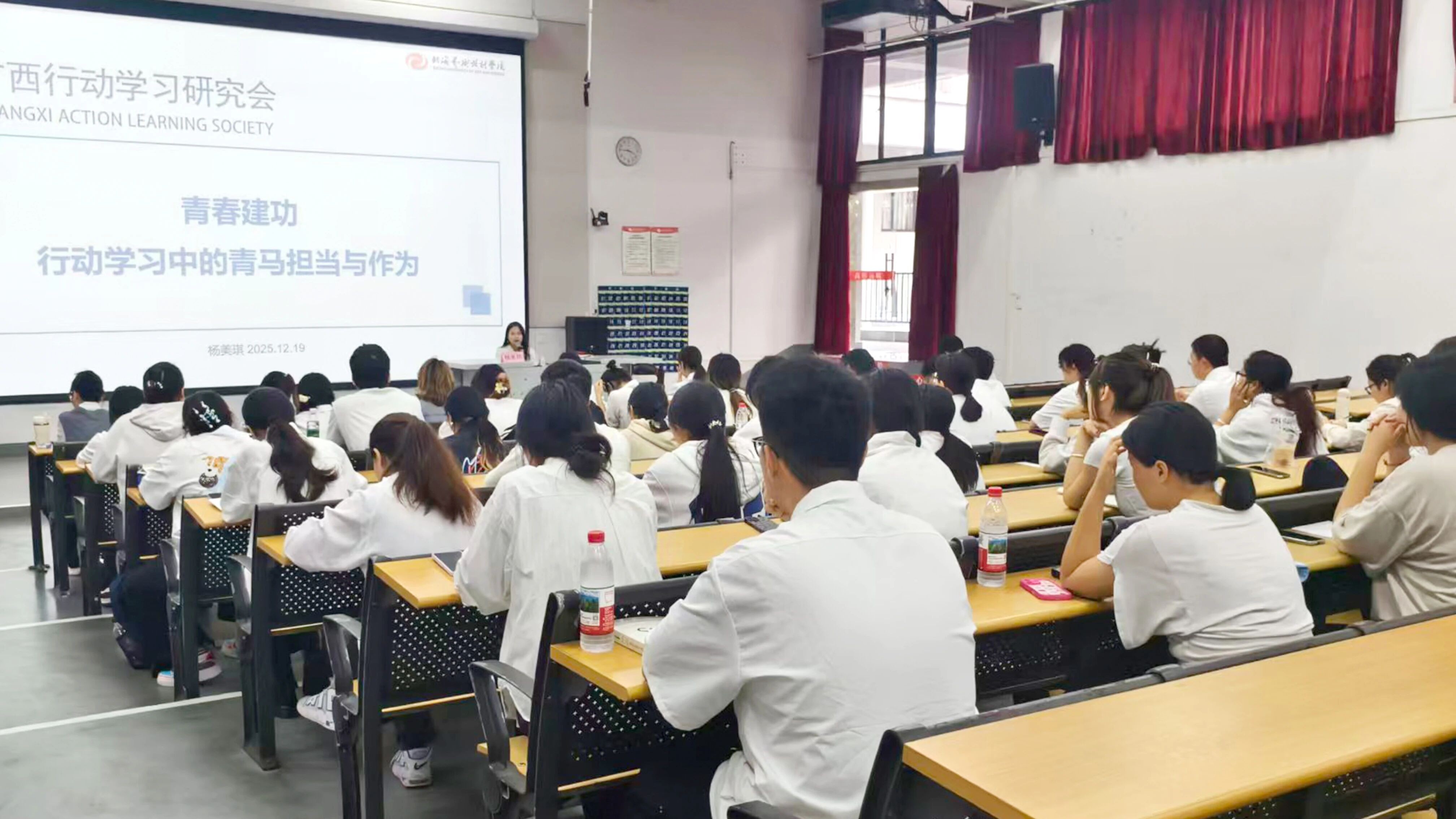 开班第一讲,由杨美琪老师带来“青春建功——行动学习中的青马担当与作为”专题授课。杨老师围绕“问题导向,群策群力,知行合一”三个部分,强调了行动学习的重要性,并分享了作为青马工程培训班学员应该如何进行系统性、方法性的学习,鼓励大家在往后的学习工作中体现青马担当作为。