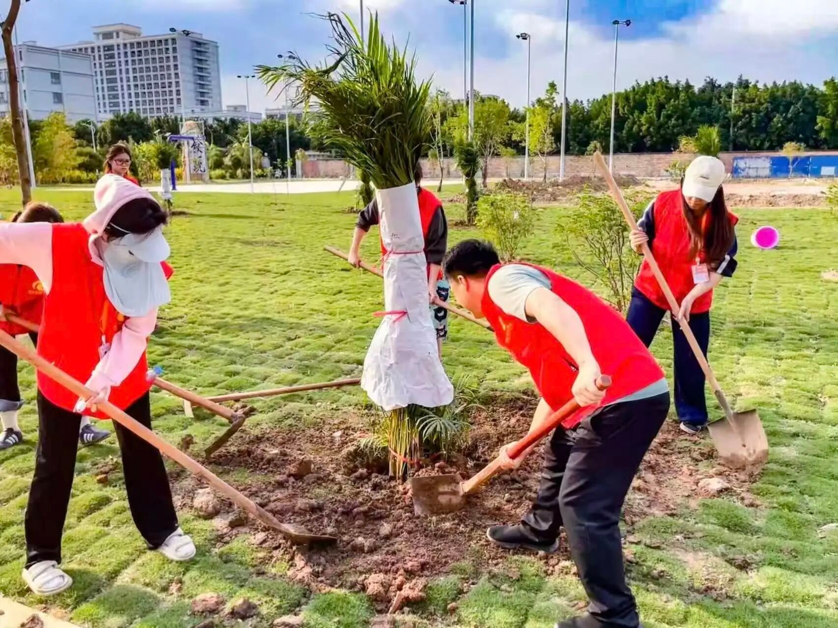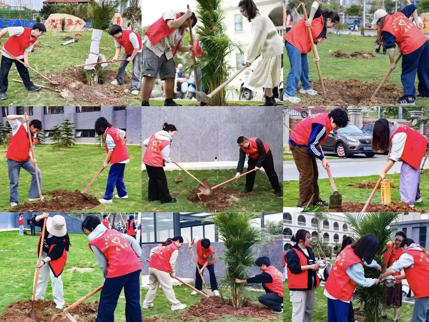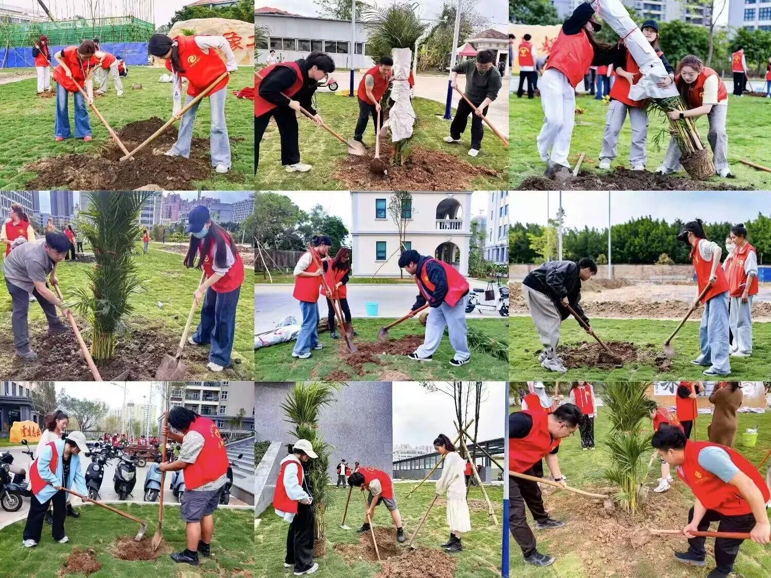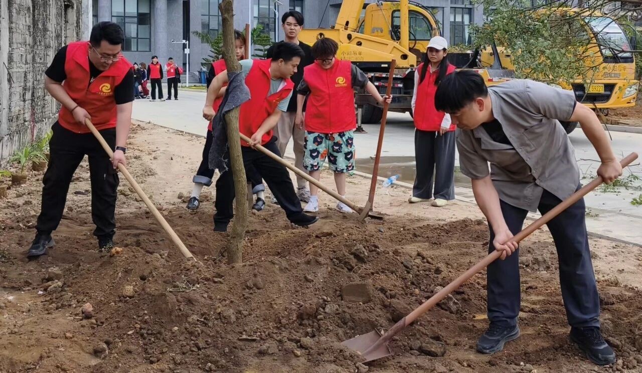 春风送暖,绿意萌生。在活动现场,大家携手并肩、分工协作,挖坑扶苗、培土浇灌,以实际行动为校园增添生机,在劳动中感受自然之美,让生态文明理念深入人心,共同守护绿色家园。