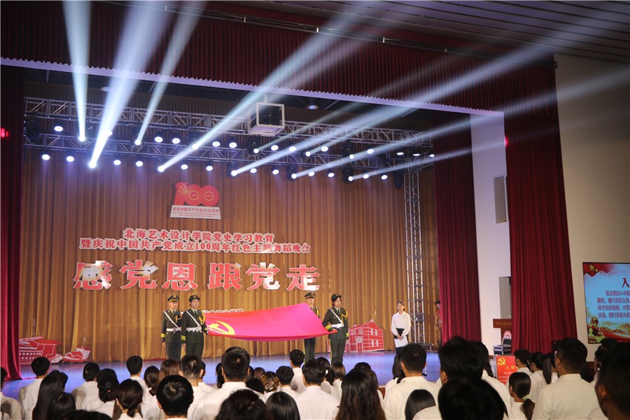 在中国共产党成立100周年之际,6月28日晚,北海艺术设计学院在校大礼堂举行新党员入党宣誓、老党员重温入党誓词仪式。学校党委书记张阳、校长卢新华等学校党政领导班子、新发展党员和老党员代表等共计400人参加活动。