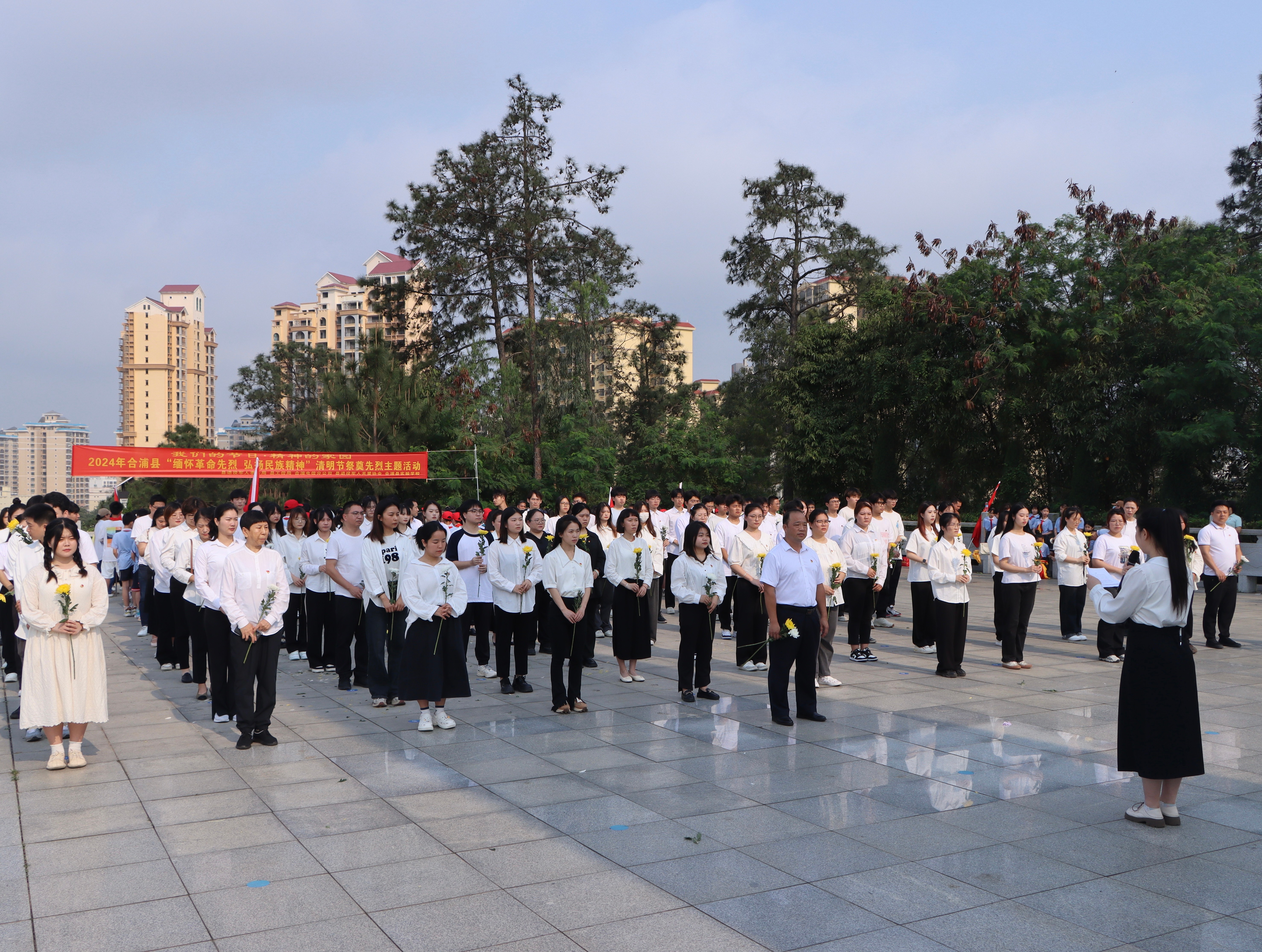 活动开始,在全体师生齐唱《中华人民共和国国歌》之后,由党、团员代表致词。党员代表陈凤康同志提出:牢记历史·不忘过去;珍爱和平·开创未来,我们应当好好学习,努力工作,强健体魄,建设富强的社会主义中国,才能对得起为之牺牲的革命先辈们,才有能力守护好这份来之不易的和平。团员代表林怡蓉同志表示:革命先烈们用生命和鲜血谱写了壮丽的赞歌,为我们留下宝贵的精神财富和不可磨灭的历史印记,作为新时代的青年,要传承红色基因,激发广大人民群众的爱国热情和民族自豪。随后,由献花队伍向革命先烈献上花篮,校党委书记范徽忠整理挽联并与师生们进行了默哀仪式,最后全体师生向烈士行三鞠躬礼,瞻仰烈士纪念碑,敬献手持花。