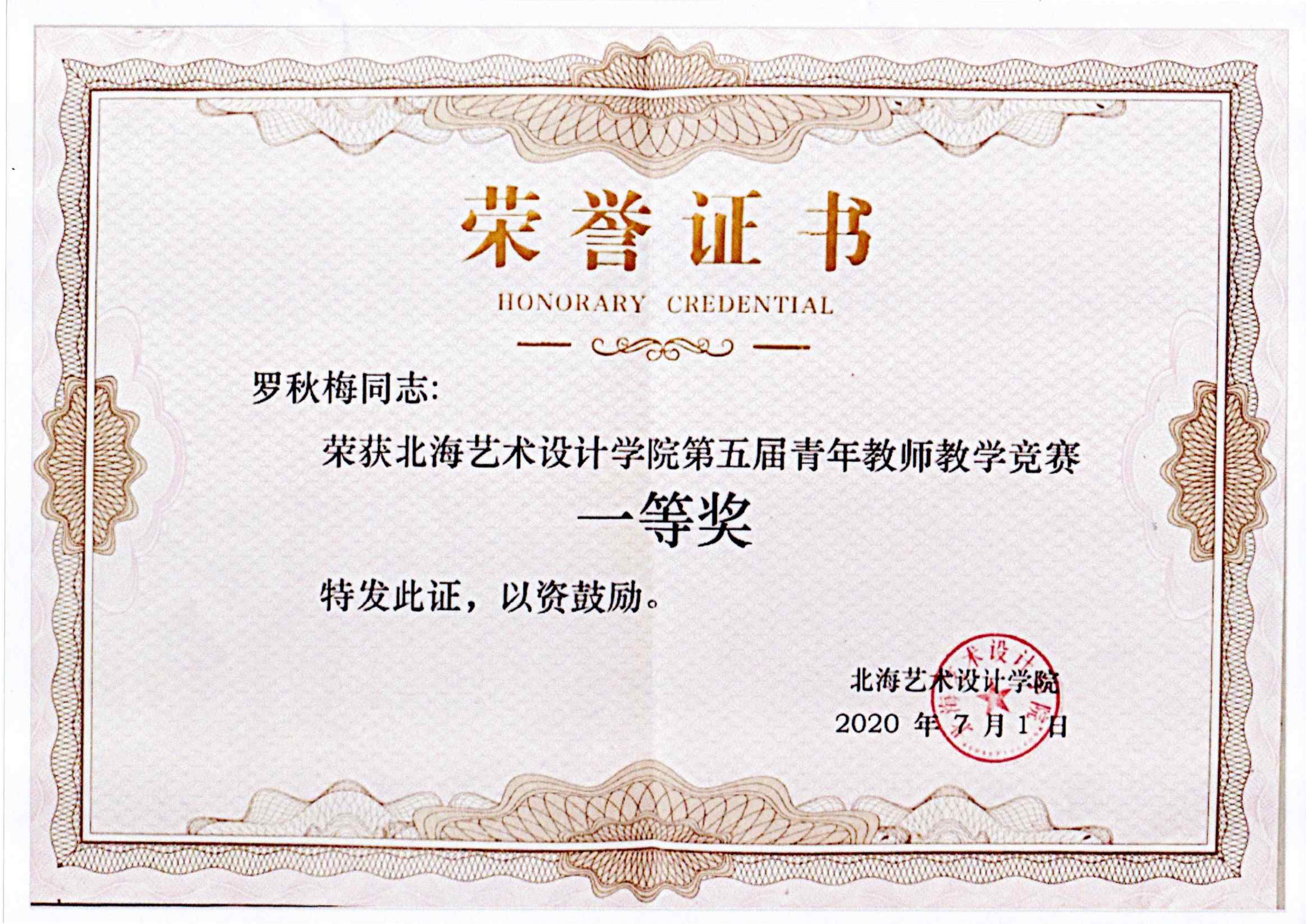 喜报:我院教师罗秋梅荣获北海艺术设计学院第五届青年教师教学竞赛一等奖