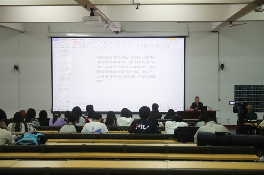 此次讲座中,孙小川教授从色彩管理和白平衡两方面全面系统地介绍了摄影的色彩后期。孙小川教授带领现场师生追溯摄影的起源,从黑白相片的胶片时代到彩色照片、数码相机的AI时代,他表示,数字化、智能化带来的冲击使得摄影更为多彩、真实。