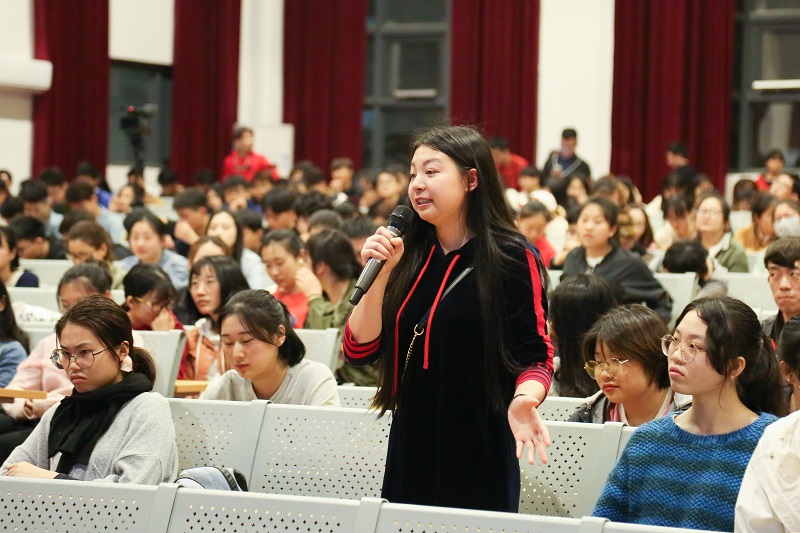 紧接着,陆教授与同学们进行了讨论,他提出一些有趣的问题:“和的意义是什么”、“什么是财”、“钱从哪里来”。对此,同学们都积极的做出应答,答案更是迥然不同。在一番激烈的讨论后,陆教授对所提出的问题进行了生动的讲解,让同学们更好的去理解问题的涵义。