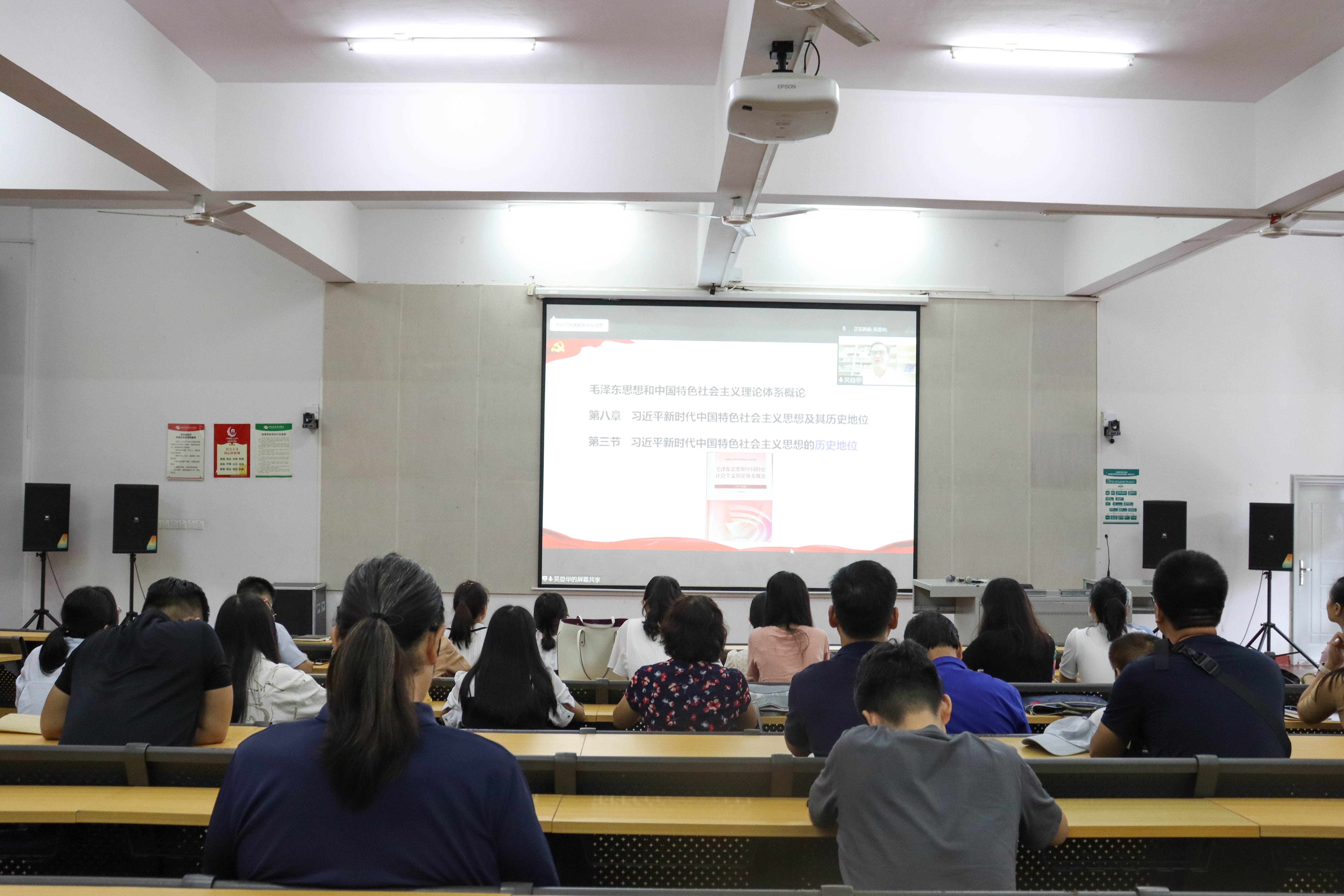 吴显华副教授“毛泽东思想和中国特色社会主义理论体系概论”课——“第八章 习近平新时代中国特色社会主义思想及其历史地位”为例子,分别从导课、教授新课、小结、作业全方面全过程为我教师现场上了一堂精彩绝伦的展示课,堪称“精彩一课”的典型示范,还对备赛、参赛、赛后反思等进行了详细的经验分享,老师们听得津津有味,频频竖起大拇指点赞不断,纷纷表示将不断强化自身的教学技能基本功,多学习、多参加、多磨课,共同提高、共同进步。他强调,老师们要在“精彩一课”比赛中脱颖而出,定要学会包装、学会打造、学会创新,更要明白这种类型比赛不是仅仅一个人就能轻而易举取得好成绩的,而是要靠背后一个优秀团队的不懈努力。
