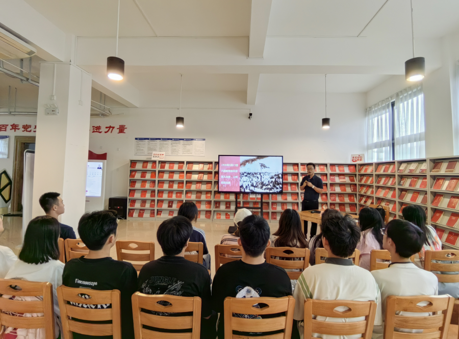 10月22日下午16:00,红色专题知识系列讲座第三场在图书馆三楼“红色阅读角”顺利开展,由马克思主义学院张宇飞老师带来了一场题为《从百年沧桑到伟大复兴》的精彩讲座。