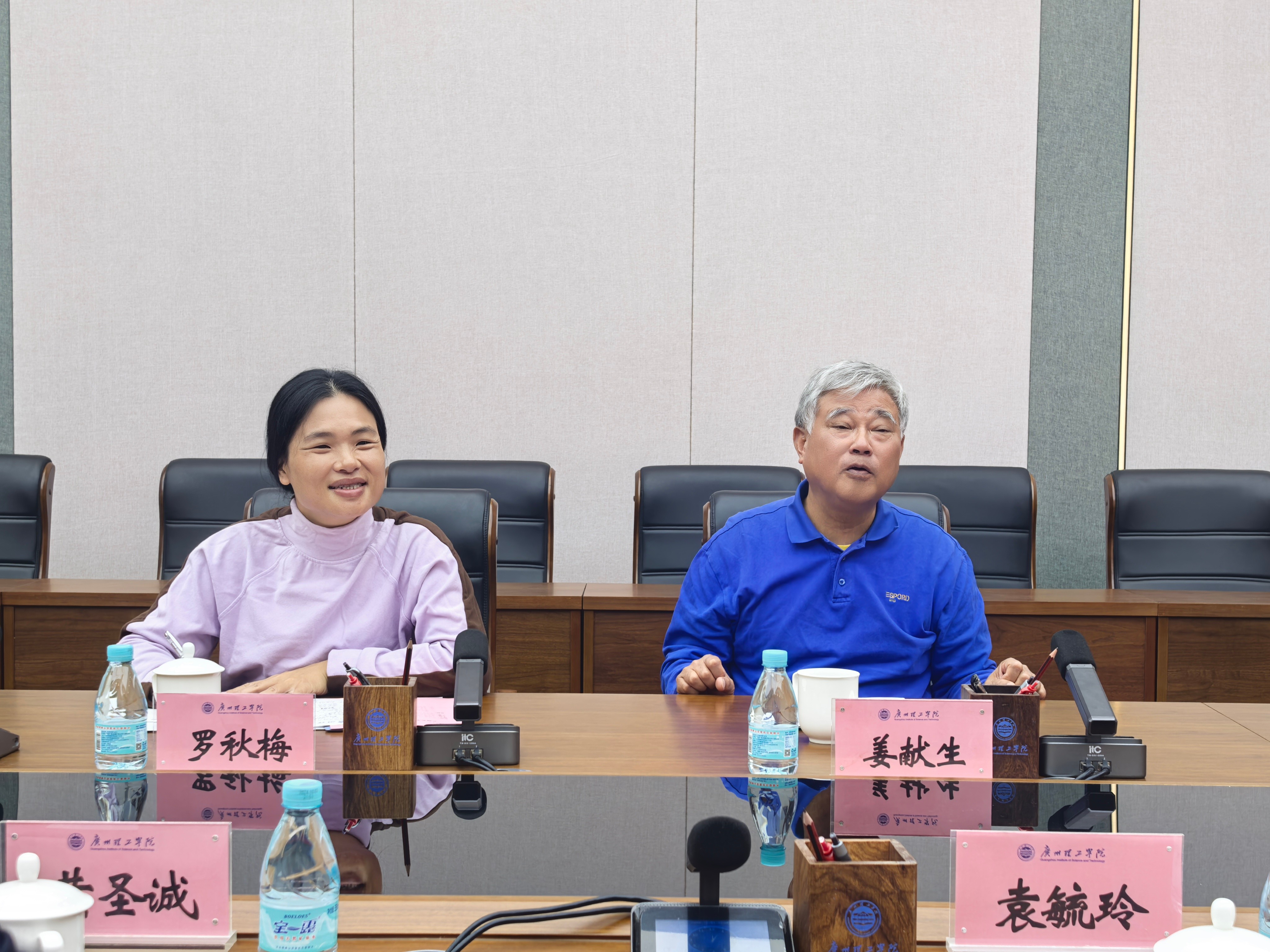 广州理工学院党委书记黄圣诚对于罗秋梅一行表示热烈欢迎。与会人员有广州理工学院党委组织部长陈朝阳、广州理工学院马克思主义学院院长袁毓玲、马克思主义学院教师代表史永康、师雨。