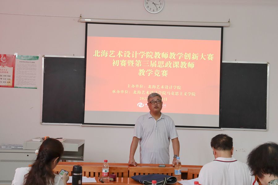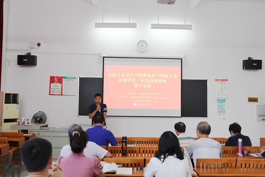 为深入学习贯彻习近平总书记关于教育的重要论述,落实立德树人根本任务,推动教学创新发展,进一步提升思政课教师教书育人能力,8月24日,北海艺术设计学院教师教学创新大赛马克思主义学院初赛暨第三届思政课教师教学竞赛在学校西校区伦理楼102顺利举办。副校长陶立阳出席活动,我院全体教师现场观摩了此次竞赛。