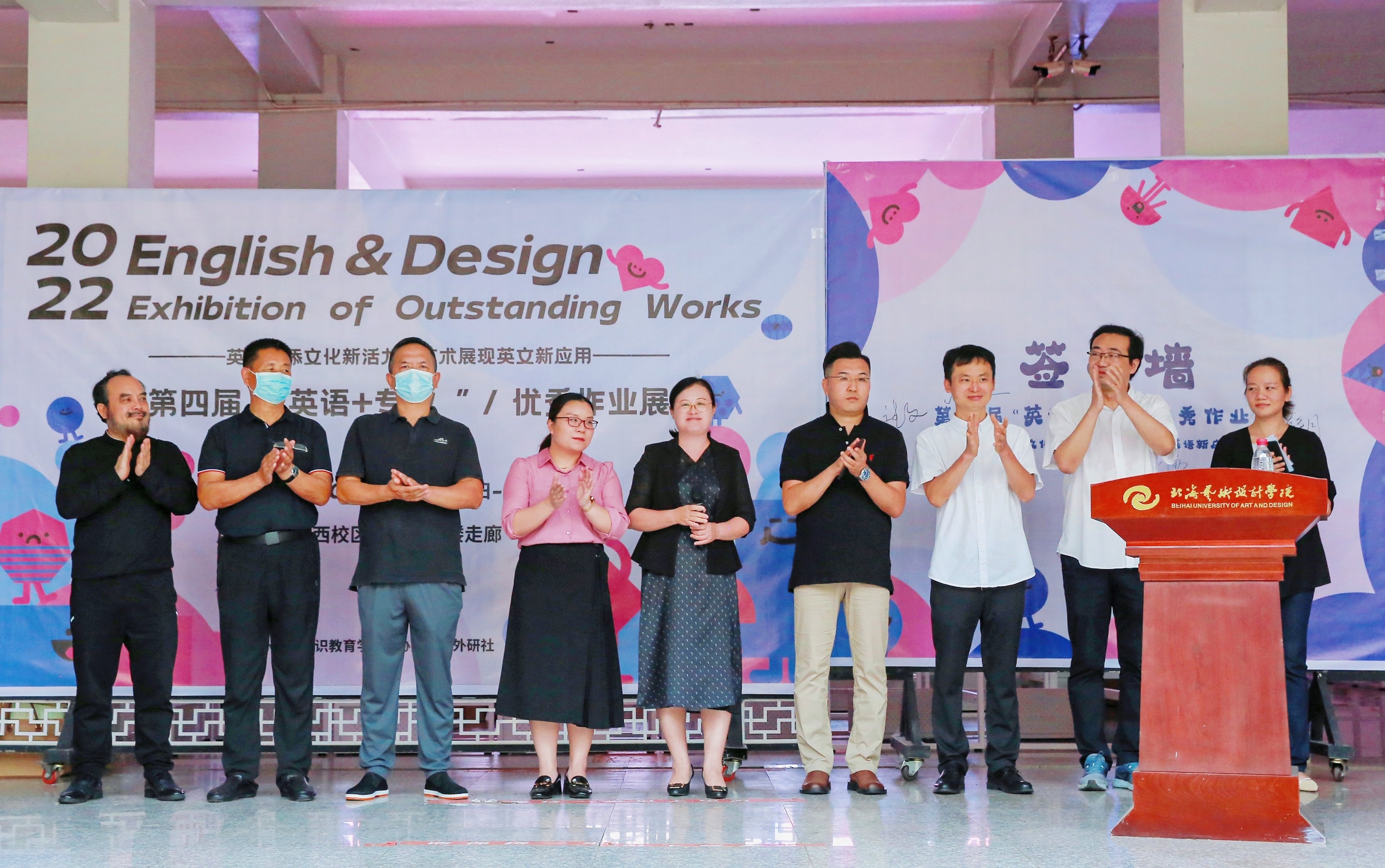 20221026日,我院外语教研室举办的英文增添文化新活力,艺术展现英文新应用暨第英语+专业优秀作”于西校区公德楼一楼隆重开展。学校党委书记张阳,党委书记韦静月,副校长邱杰等校级领导,第四党总支书记刘承初,通识教育学院党支部书记周斌,通识教育学院副院长黄丹,西北师范大学北海附中副校长杨旭东教授,广西教育学会美术专业委员会理事刘阳奎教授,高级室内设计师、收藏家龙文先生,美术学院雕塑专家波波夫·康斯坦丁以及全体外语教研室教师应邀出席了开展仪式。