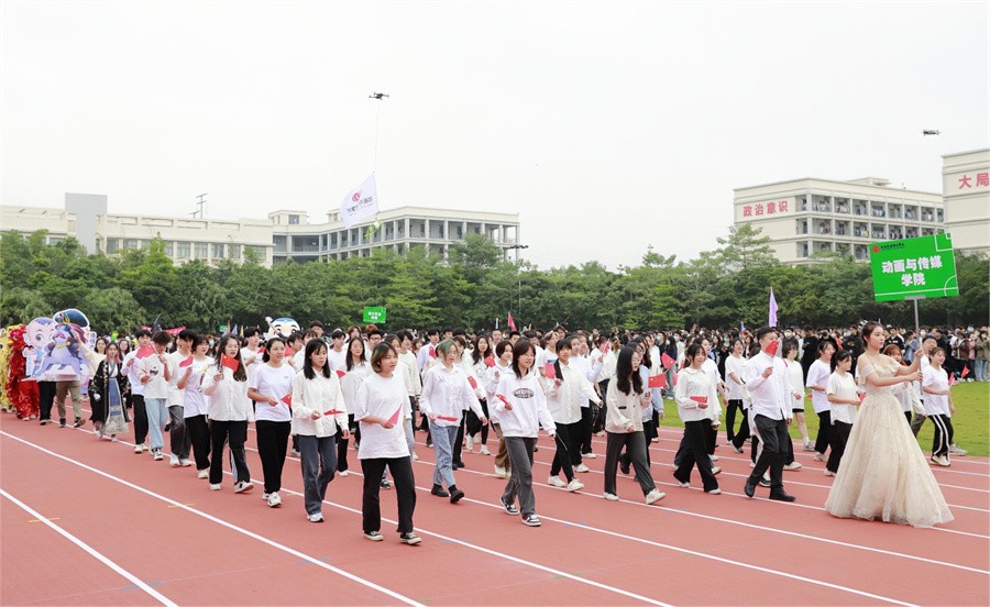开幕式上,国旗队、护旗队、会徽队挺拔身姿,高举国旗、校旗、运动会会徽,迈着矫健的步伐,阔步开场;紧随其后的彩旗队,面面彩旗迎风飞扬,热烈喜庆。紧接着,各二级学院、裁判、社团方阵有序入场,朝气蓬勃的面孔青春洋溢,轻巧欢快的步伐活力满满,每个方阵结合自身特点带来特别表演,丝丝入扣的情景剧、婀娜多姿的舞蹈、英姿飒爽的军体拳、各具特色的社团走秀展示,精彩连连,氛围拉满。