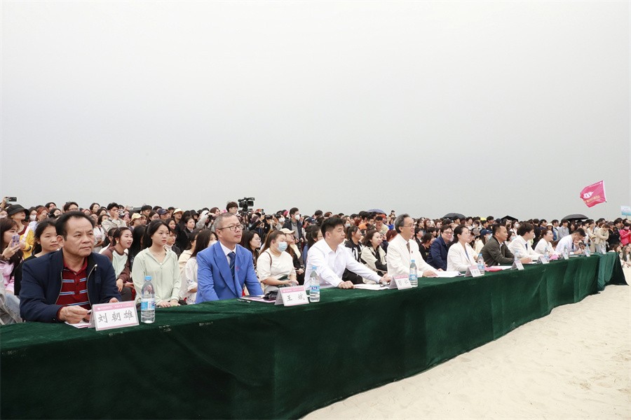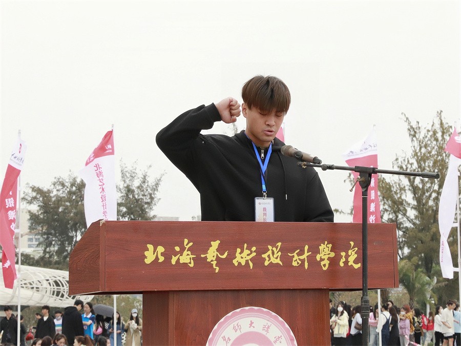 党委书记张阳宣布“北海银滩沙雕比赛暨北海艺术设计学院第二十届沙滩运动会”正式开幕