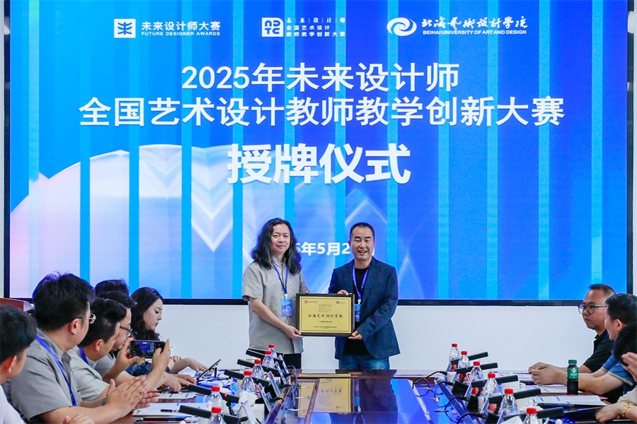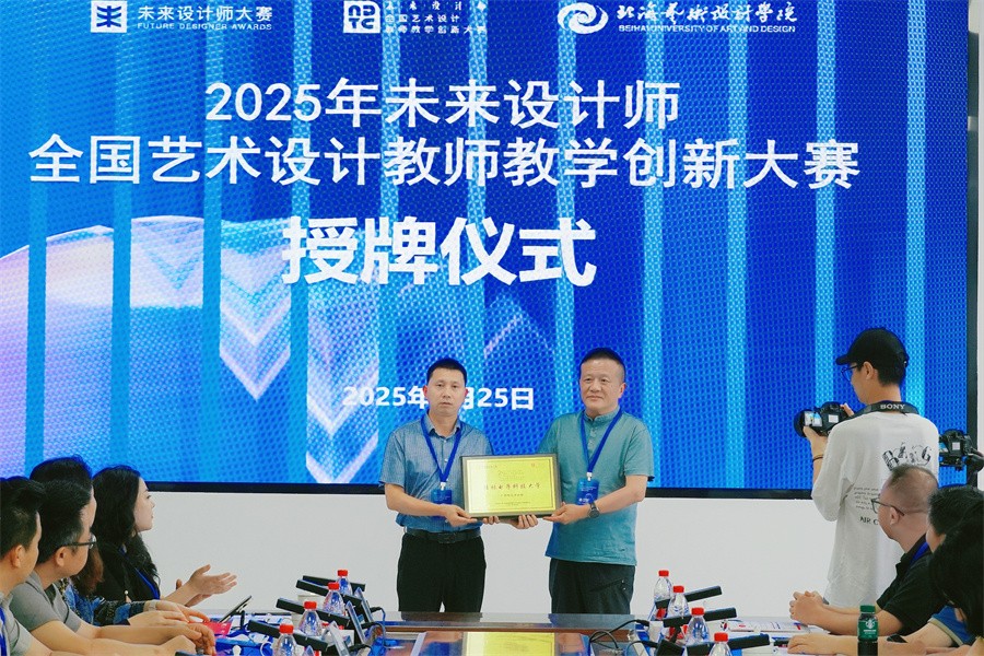 郭清胜秘书长为2025未来设计师全国艺术设计教师教学创新大赛广西赛区承办校——北海艺术设计学院授牌