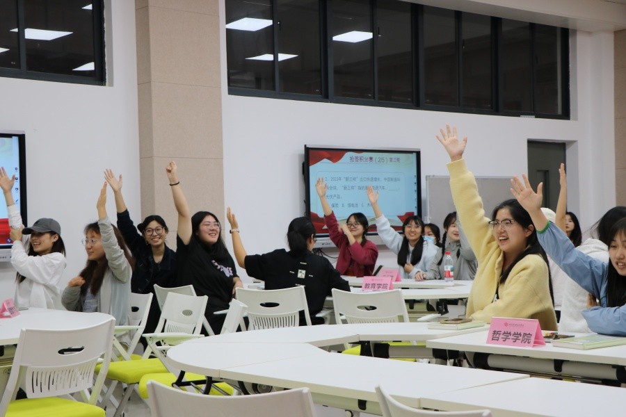 为丰富宣讲形式,切实提升学生参与度,宣讲团结合党史、党的创新理论等内容,精心设计趣味互动环节,引导学生在分析、推理与分享中深化对党的创新理论核心概念的理解。现场气氛热烈活跃,充分展现了青年学子昂扬向上的精神风貌和团结协作的集体意识。