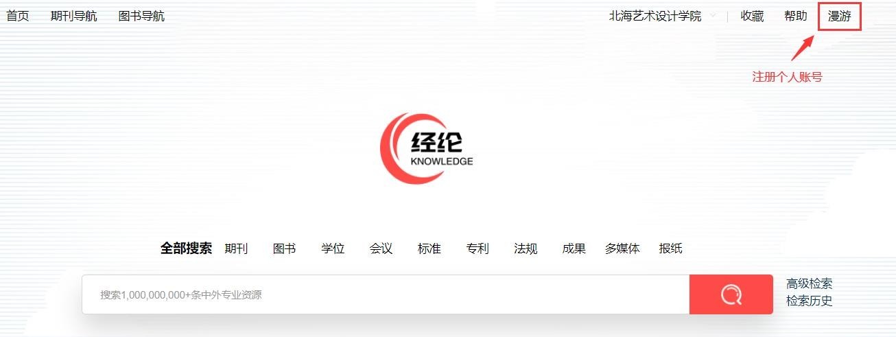 1.因校园网外打开经纶平台网址:http://k.vipslib.com/,无法自动识别登录,如您已注册过个人账号,请使用个人漫游账号登录,如为注册过请选择机构账号登录,并输入学校机构账号:bhyssjxy,密码:bhyssjxy2022,即可登录,登入过后右上角会显示学校名称。