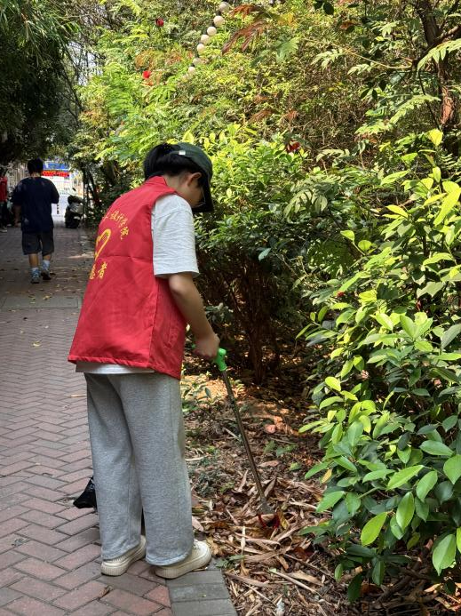 除了校外路面的清扫,校园内的清洁也在火热进行中。志愿者们认真清扫每一片落叶、每一张纸屑,确保每一寸土地都恢复清新与活力。烈日炎炎下,虽然汗水浸湿了他们的衣背,但志愿者们的干劲却丝毫未减,红色马甲的光芒映射在路人的脸上,周边的居民纷纷投来赞许的目光,更有不少路人被这份热情所感染,主动加入志愿者队伍中,一起为街道的清洁贡献自己的力量。在本次校园清洁行动中,志愿者们用实际行动为同学们树立了榜样。未来,我校青志协也将继续组织各类志愿服务活动,让北艺学子在活动中增强团队合作意识和社会责任感,在奉献中收获,让青春在奋斗中绽放更加绚丽的光芒!(校团委青年志愿者协会/图)