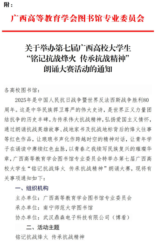 关于组织参加第七届广西高校大学生“铭记抗战烽火 传承抗战精神”朗诵大赛活动的通知