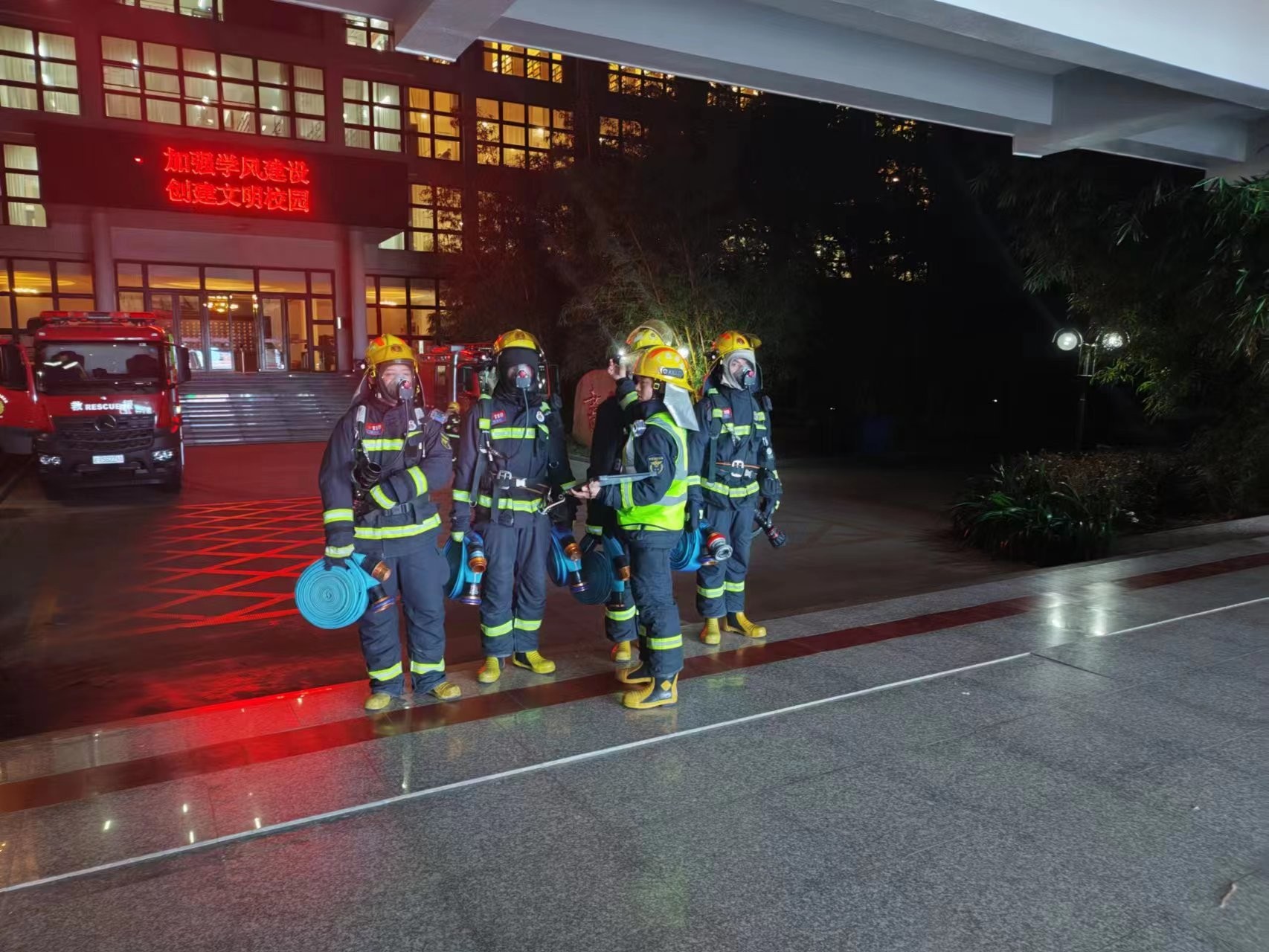 为切实提升学校消防救援水平,达到师生“第一时间发现火情, 第一时间报警”;消防员接警后“第一时间到场展开,第一时间实施救人, 第一时间控制灾情发展。”3月10日,北海市消防救援支队南珠站组织消防员深入我校开展熟悉演练。