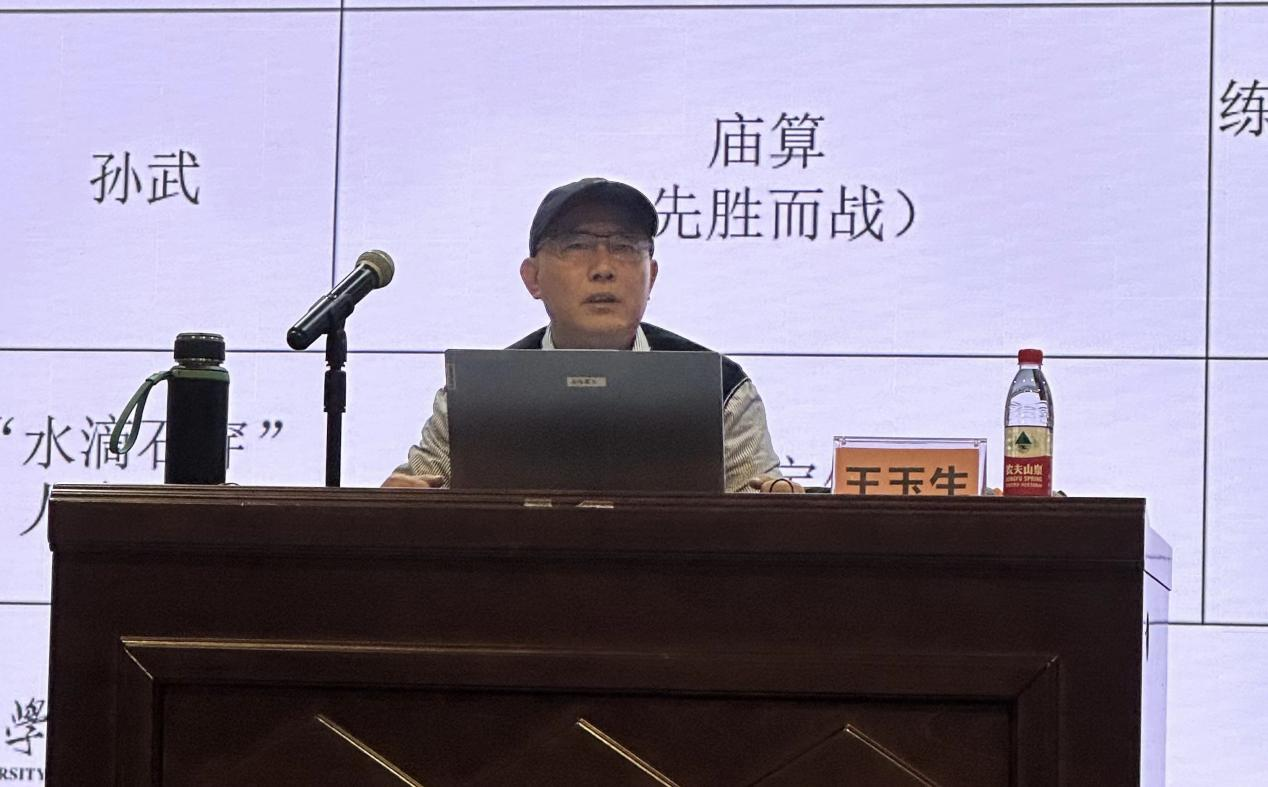 在探究“中和”之维实际中的具体做法时,王教授就管理人生的方式,提出了“水滴石穿”人生兵法,强调人生发展首先是水滴定位,确定人生发展方向,然后是朝着目标坚持不懈地努力直至目标达成。王教授勉励同学们,确定目标之后要持之以恒地努力,成功不是终点,失败也不是末日,最重要的是保持一以贯之的勇气和坚毅。