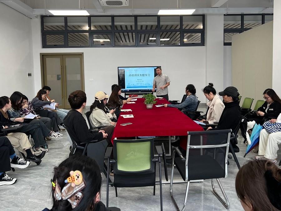 副院长李谦结合当前教育形势和学校实际,深刻阐释了师德师风建设的重要性。教师是立教之本、兴教之源。师德师风建设是学校高质量发展的根基,全体教职工要坚守教育初心,以德立身、以德施教,争做“四有”好老师。教师们要提高思想认识,深入学习《新时代高校教师职业行为十项准则》,将师德规范内化于心、外化于行。教师不仅要传授知识,更要塑造学生品格、品行和品位,成为学生成长的引路人。