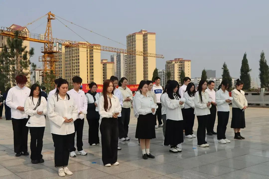 在庄严肃穆的烈士纪念碑前,全体人员整齐列队,向革命先烈默哀一分钟,表达对英烈的深切悼念。