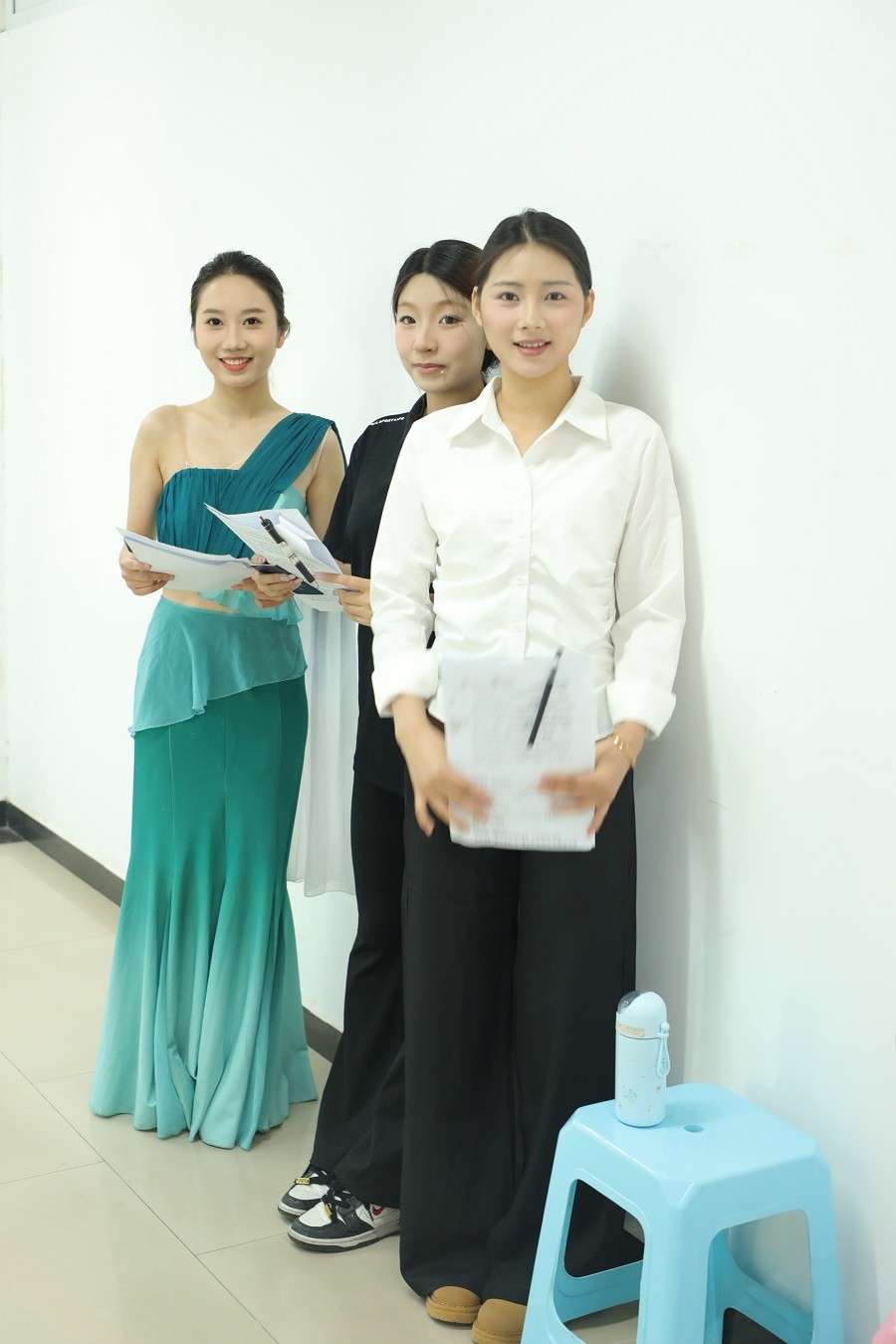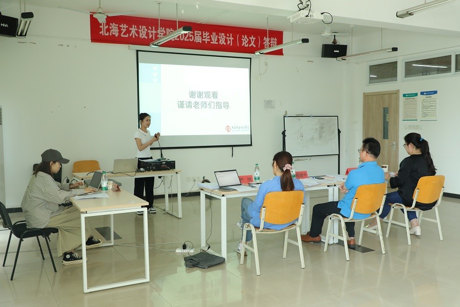 答辩流程分为答辩前会议”“正式答辩结果宣布三大环节。答辩前,学生需完成身份核验与签到,随后进入备答室进行最终准备。在正式答辩环节,学生依次进入答辩室,陈述毕业设计(展演)文案内容,并回答评委提问。每个答辩室由三位评委老师、一位记录员和一位摄像员组成答辩工作小组,分工明确,确保答辩工作的严谨性和规范性。