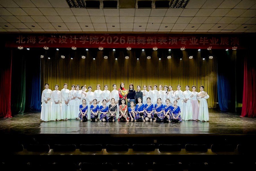 此次毕业展演的圆满落幕,既是对2026届舞蹈表演专业学子学习成果的集中检阅,也为他们的校园艺术生涯画上了圆满句点。北海艺术设计学院舞蹈学院将继续秉持育人初心,深耕专业建设,为舞蹈艺术领域培育更多优秀人才。(王飞/摄)