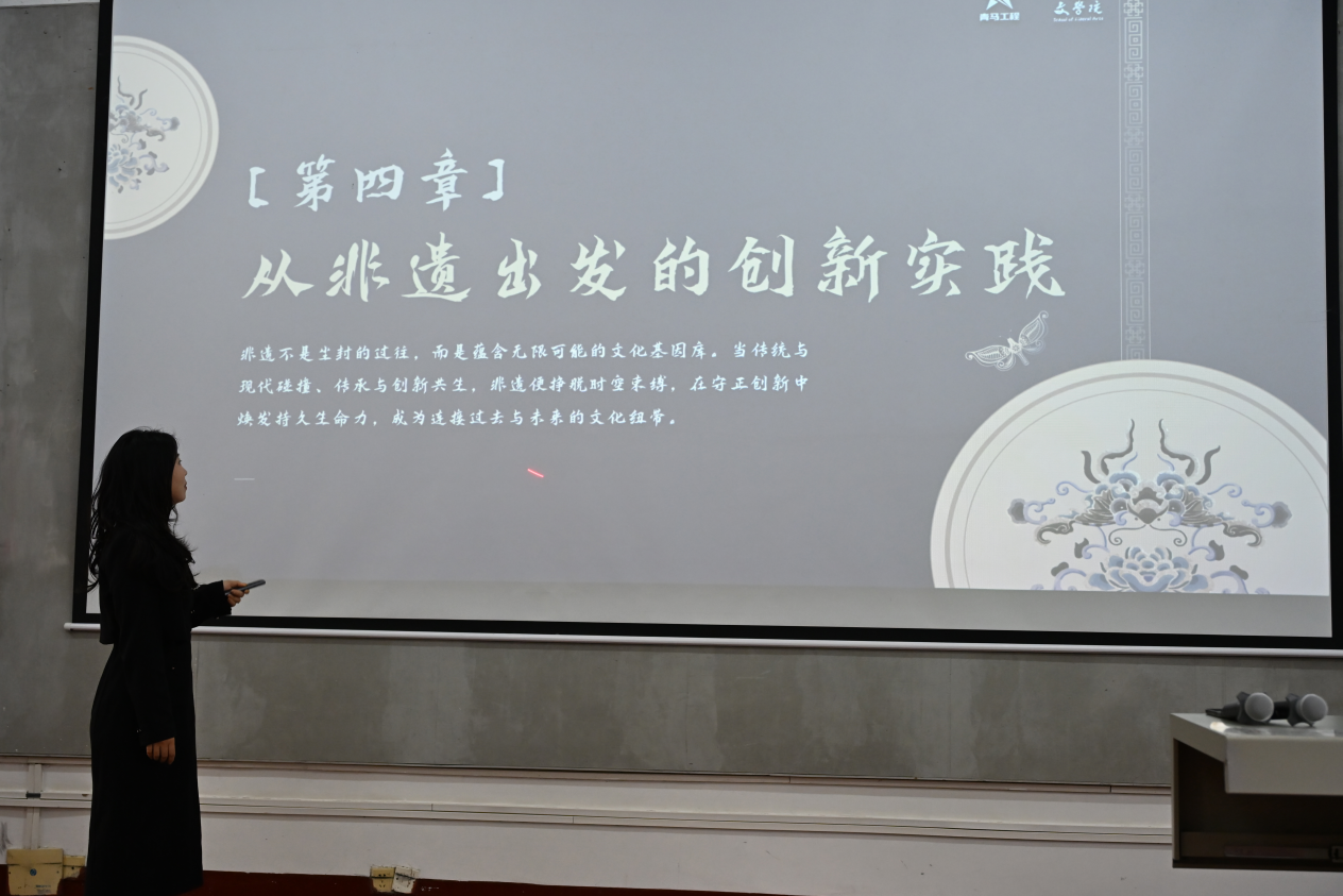 第二讲,由文学院分团委书记马有泽与创新创业课程教师张晨共同授课,以“创新创业助力非遗文化自信开创未来”为主题,采取“理论+实践”相结合的方式。课堂上,教师组织学员围绕广西非遗长远发展项目展开小组讨论,探寻创新转化新路径,为青年参与文化传承与创新创业提供方法指导。