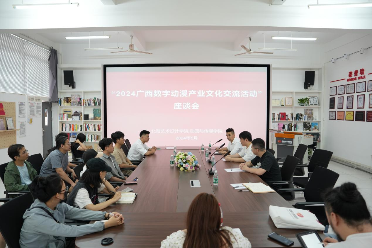 为推动广西数字动漫文化产业的蓬勃发展,深化校企合作,激发产业创新活力,5月10日,动画与传媒学院邀请广西动漫协会副会长、广西南宁四叶草文化传播有限公司总经理周卫炜、副总经理罗翼来校展开交流座谈,共同探讨数字动漫产业的未来发展趋势。动画与传媒学院孙永辉院长及10余位动画专业教师参加座谈,会议由动画教研室主任吴锡红主持。