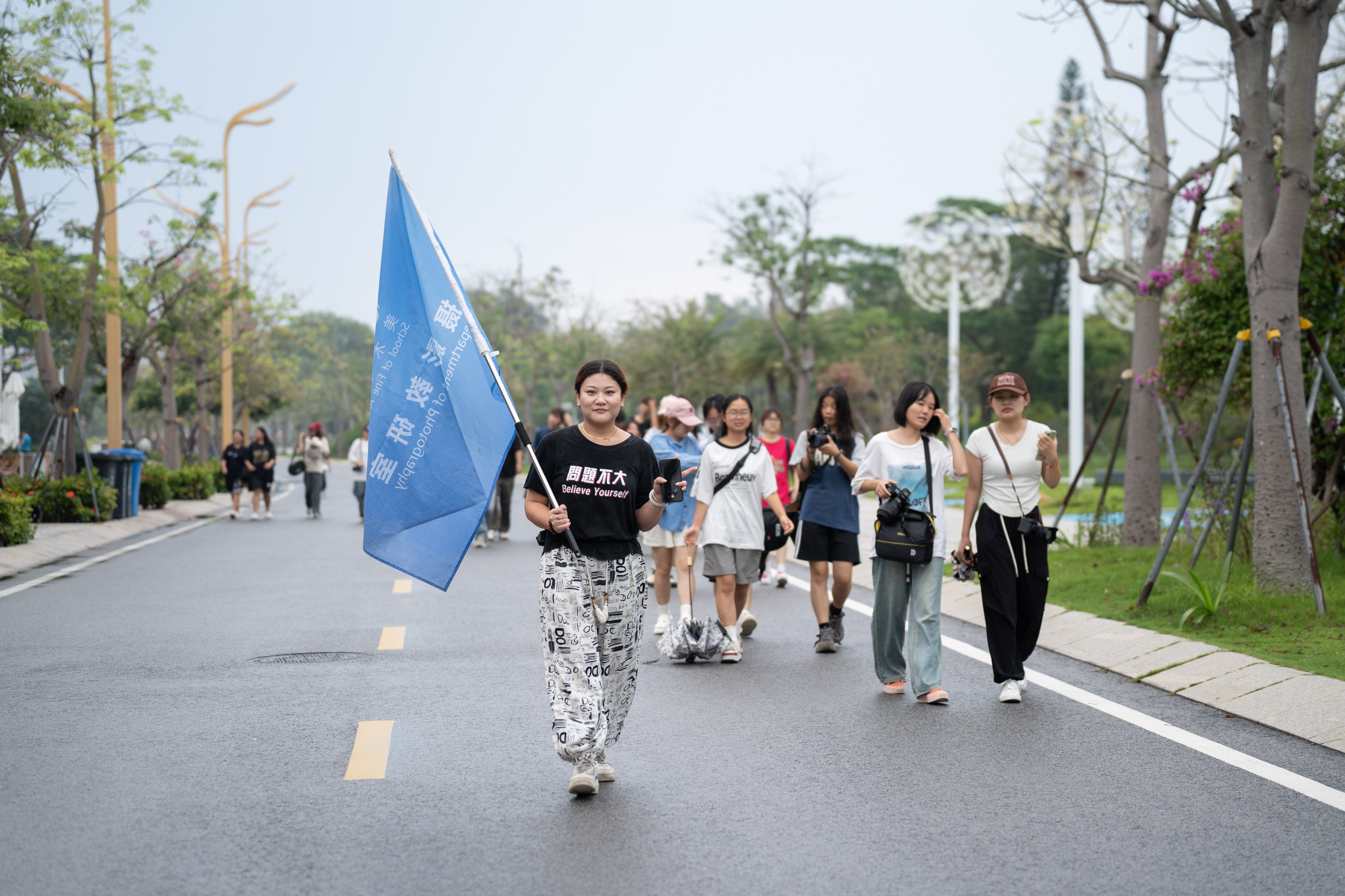 北海艺术设计学院美术学院摄影教研室受邀负责本次活动的拍摄工作。鉴于美术学院摄影专业20222023级本学期开设有《动态影像创作基础》《构图学》课程,目前已进入综合实践阶段,为拓宽学生视野,提升学生专业审美能力,更好地做到理论结合实践,给予学生更直观的学习体验,美术学院组织摄影专业师生共计59人(其中教师4人,学生55人)由实训处副主任李异老师带队,于921日上午630由西校区北门集合出发,前往北海银滩潮雕广场参加此次骑行活动开幕式,并进行拍摄实践与交流学习。