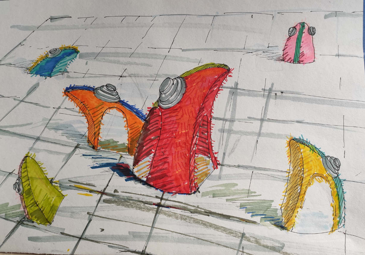 我院参加此次公共艺术周的作品名为《蛙声一片》,由雕塑教研室师生设计以及制作,共历时一个半月。作品结构以钢架为主体,以铁线、布艺、镭射纸等综合材料为辅。以广西壮族铜鼓文化上的蚂拐元素为创作依据,对其进行提炼与简化,加以重新空间的布局与创作,由6只大小不一的青蛙构成,最大的青蛙高达3.5米,最小的青蛙也高达1米 。
