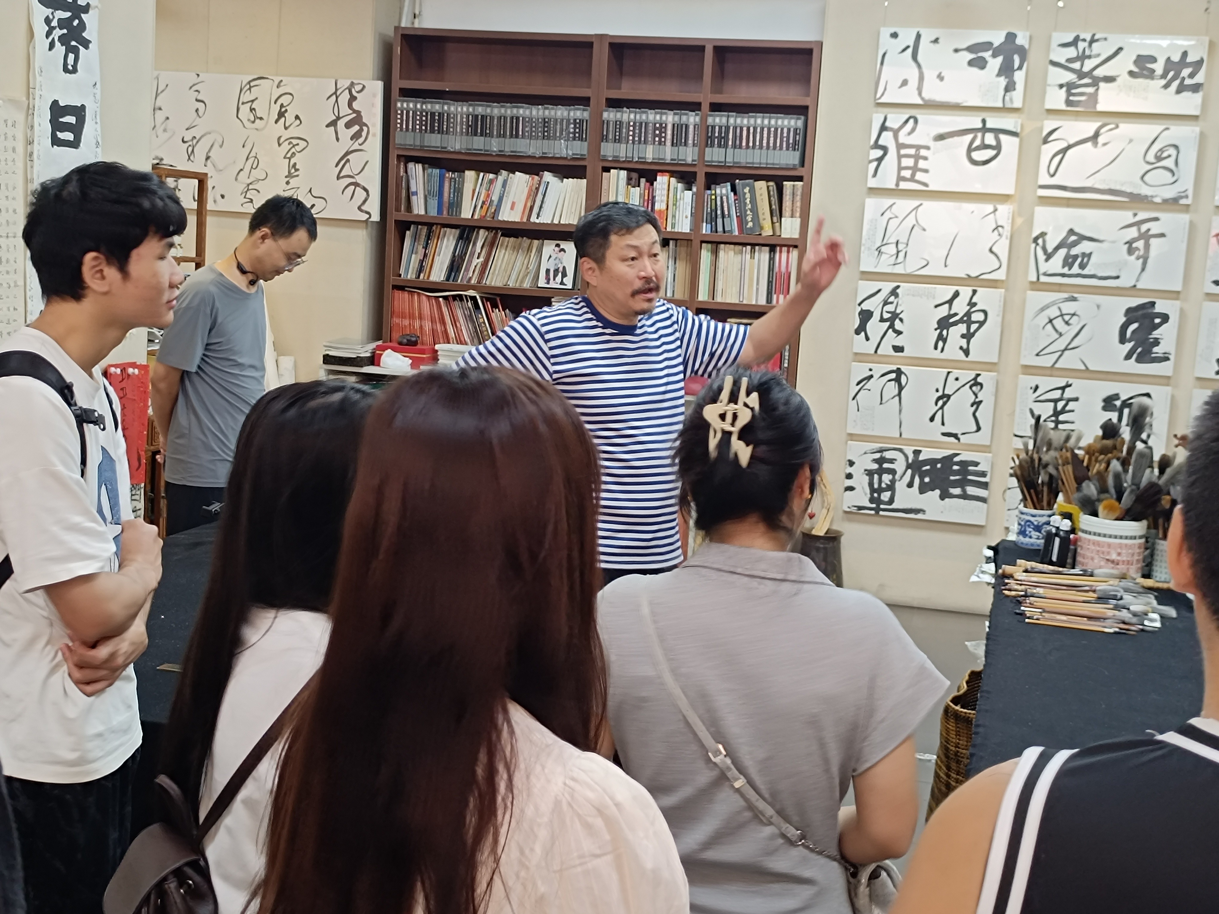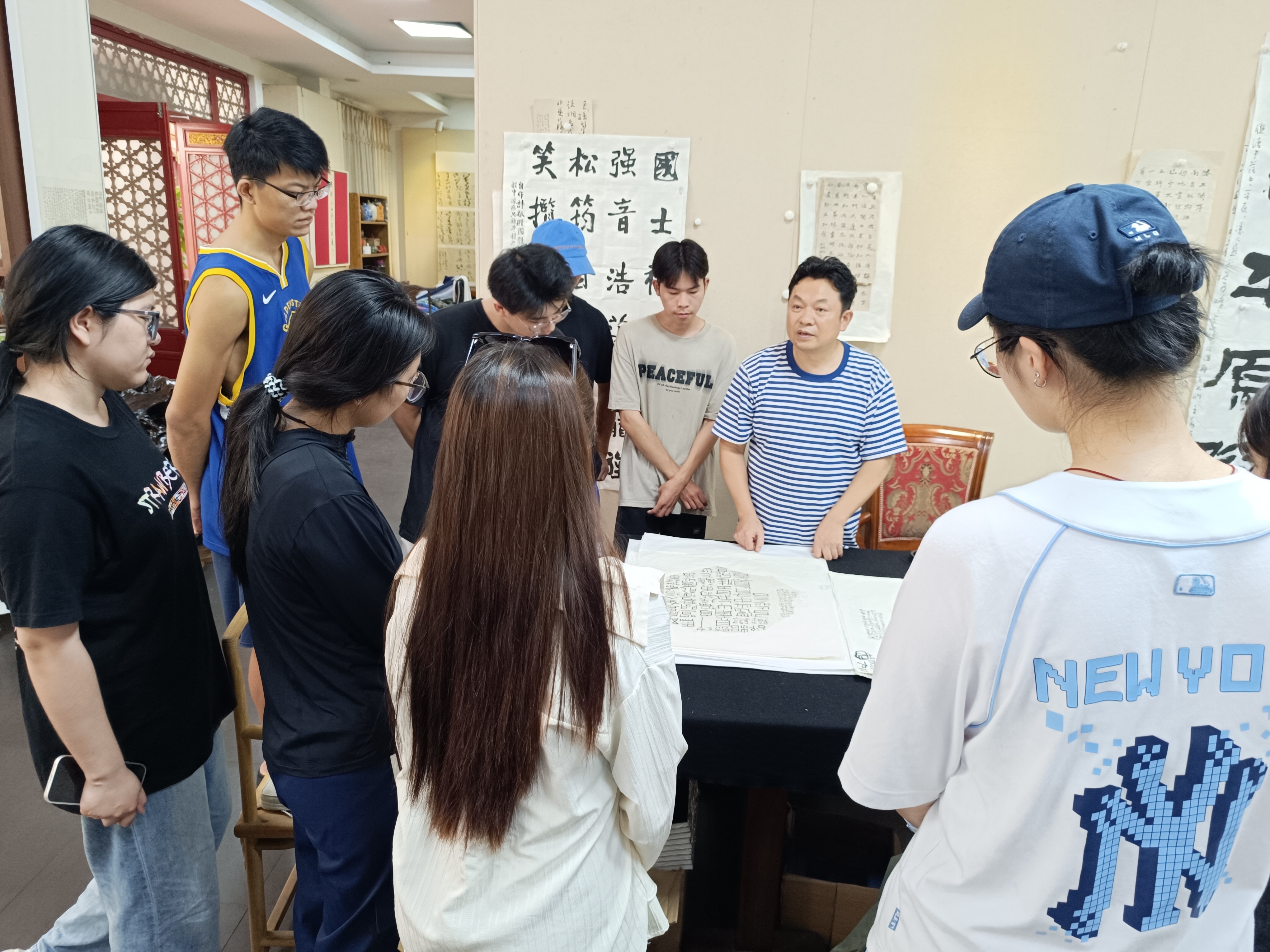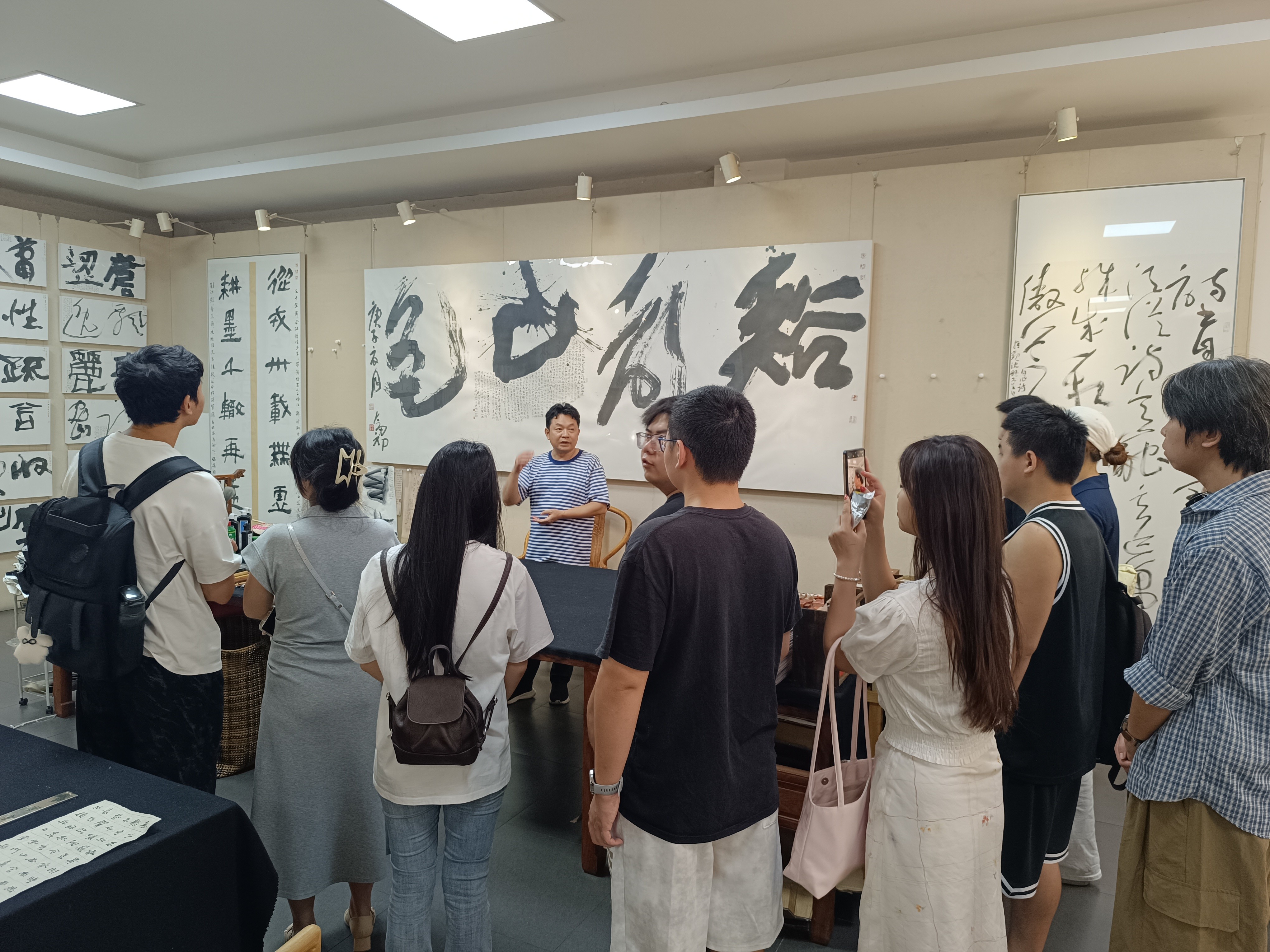 202596日,教研室副主任张天赋带领书法学院2022级学生分批前往北京周剑初五体书法馆开展研学活动。通过近距离观摩当代书法名家周剑初的代表作品,学生们深入理解“五体兼修”的艺术理念,与周老师展开亲切交流,收获颇丰。