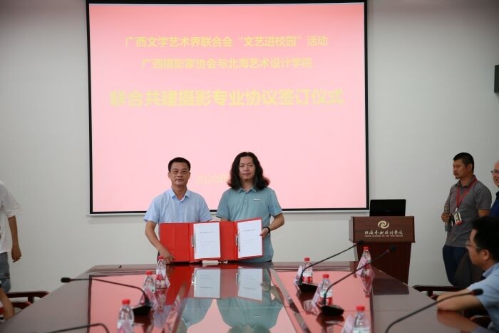 会上,副校长胡胜与广西摄影家协会主席、秘书长施兴良代表双方签订了联合共建摄影专业合作协议。