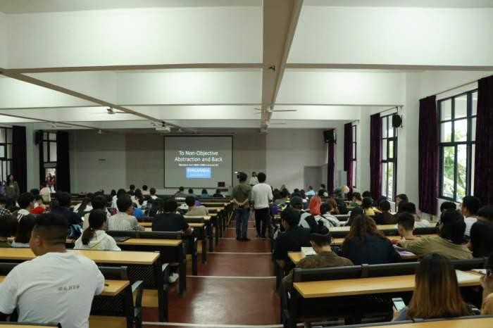 讲座尾声,丹尼斯教授表示下一讲将会有关于毕加索等画家。这部分讲座在全场师生的热烈掌声中圆满结束,下一讲的内容请同学们敬请期待。 (陈建江 摄)