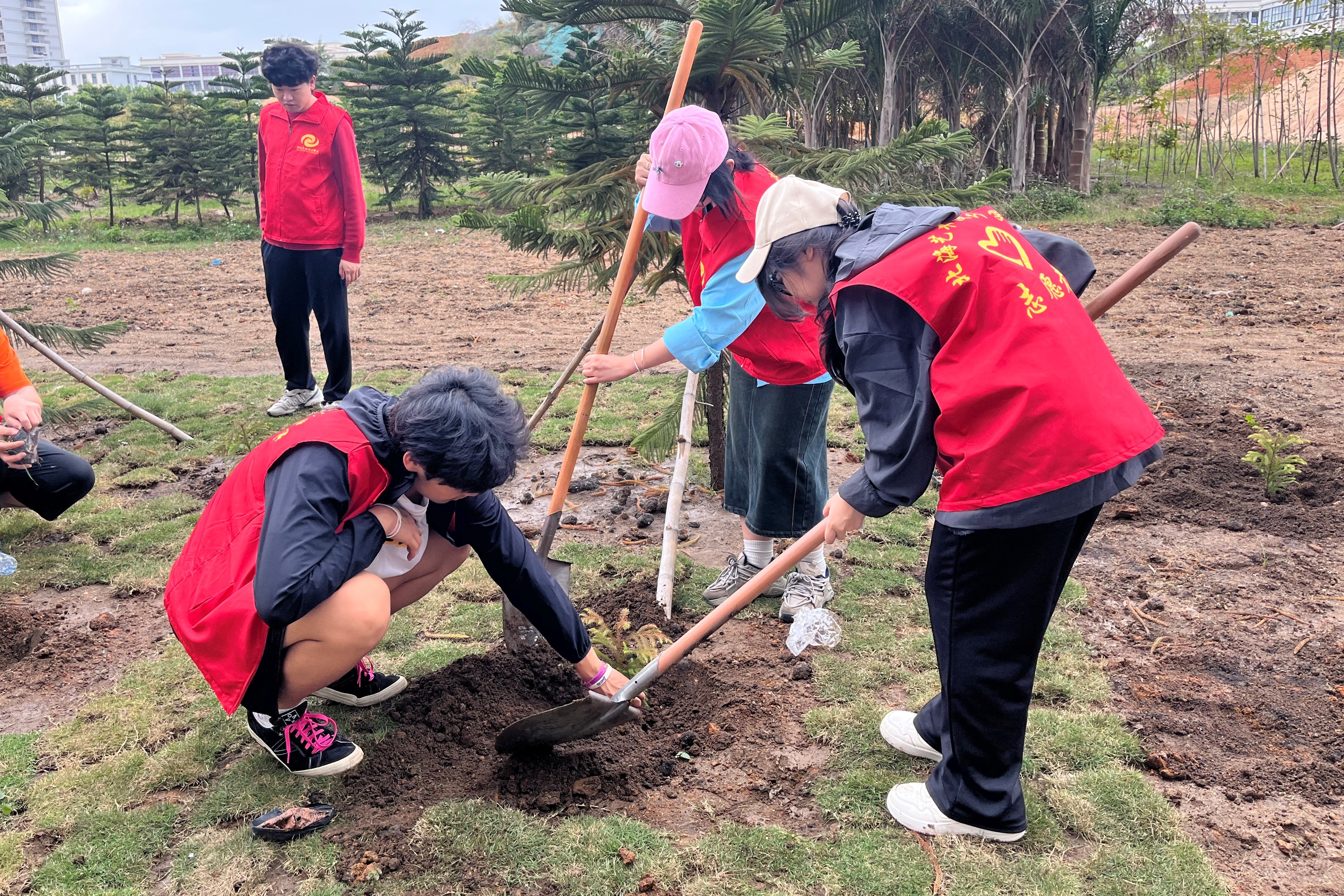 三月春风暖,植树正当时。在第46个植树节来临之际,书法学院分团委于3月11日下午,组织学生骨干王应祖、林清瑜、齐子旭、谢春喜等赴南校区开展校园植树活动。为校园增添一抹新绿,也用实际行动践行“绿水青山就是金山银山”的生态理念。