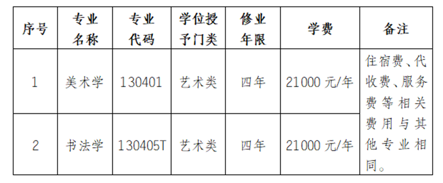 依据《广西壮族自治区民办学校收费管理暂行办法》(桂发改收费规〔2019〕1145号)的规定,现将我校新增美术学、书法学专业收费标准公示如下:
