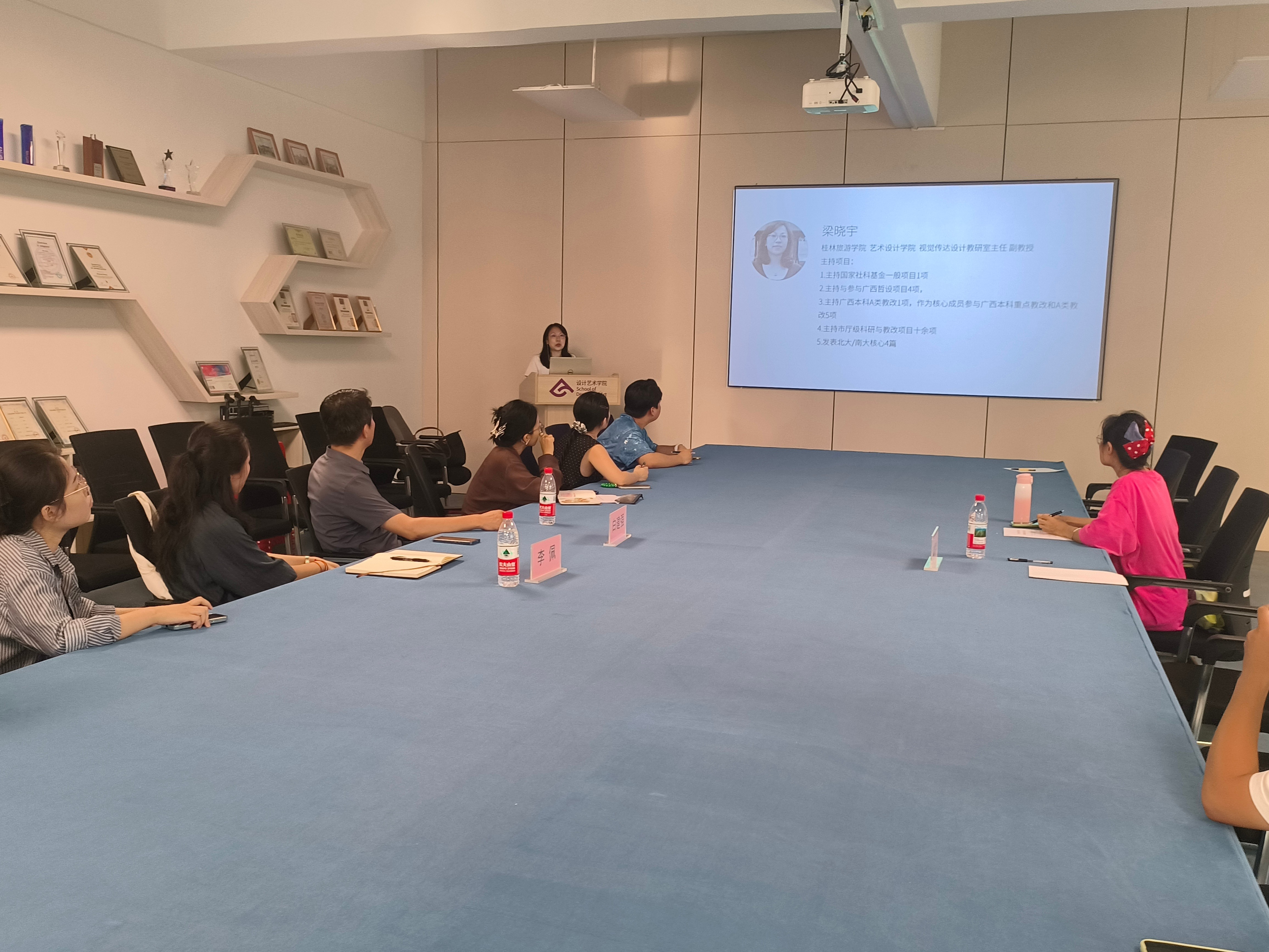 近日,“传承非遗·创新海丝”文化创意教学研究团队邀请桂林旅游学院梁晓宇副教授为青年教师开展关于科研项目申报的培训活动,培训由团队负责人设计艺术学院副院长白建强主持,李佩副院长及团队成员出席。