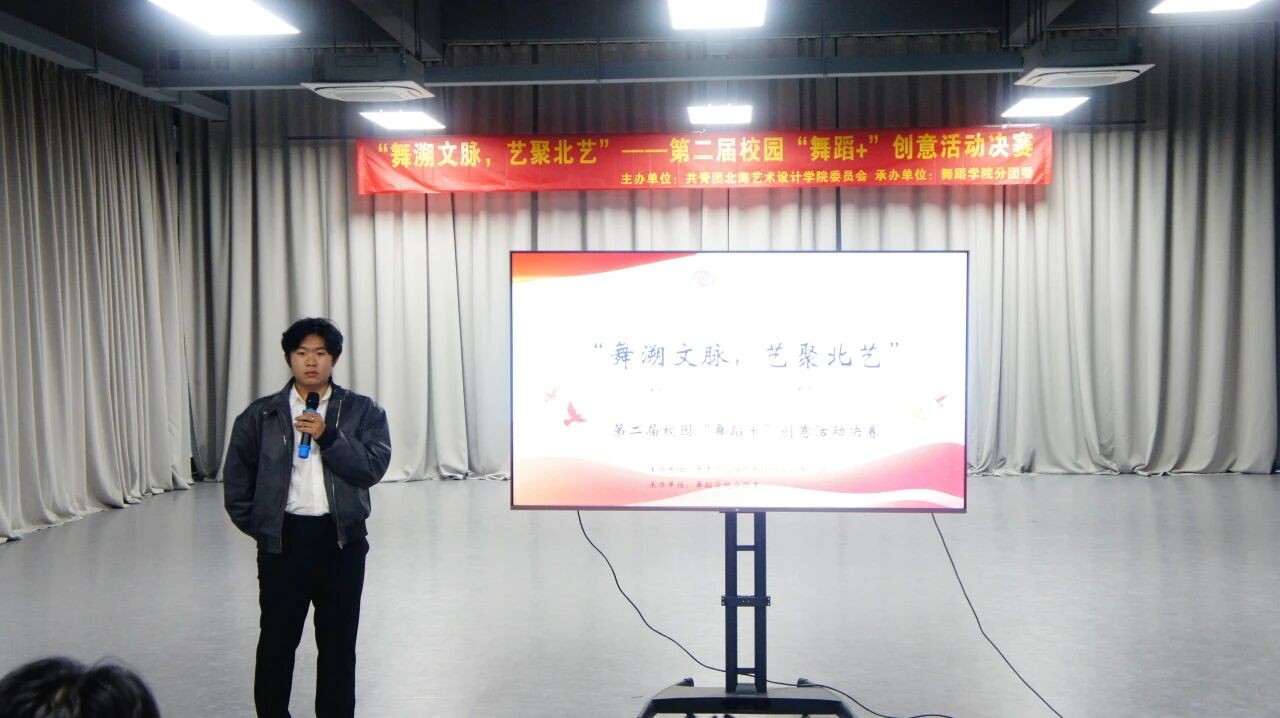 2025年12月26日,由共青团北海艺术设计学院委员会主办,舞蹈学院分团委承办的“舞溯文脉,艺聚北艺”第二届校园“舞蹈+”创意活动决赛在艺德楼313小剧场顺利完赛,舞蹈学院常务副院长邓欢、副院长李谦、书法学院副院长李家琪、北京实践基地副主任严腾等领导老师以及各专业学生来到现场观赛。舞蹈学院副院长翁梦蕾、建筑与环境艺术学院高级工程师,北海艺术设计协会会员农昌倩、舞蹈学院艺术教育教研室主任苏泽浩、美术学院摄影教研室专业教师何汝鑫、影视动画学院专业教师王弘武担任本次决赛的评委。